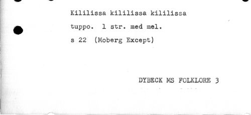 //// Kililissa kililissa kililissa //// . - ' //// ^ tuppo. 1 str. med mel. //// s 22 (Moberg Except) //// i //// K //// } //// f //// DYBECK MS FOLKLORE 3 //// ** < g it. * -* //// ^ ..________________________ ______________ _______________^ ^__. ___________ '_ ^ _ ////