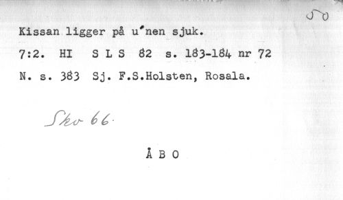 //// Kissan ligger på u^nen sjuk. //// 7:2. Hl S L S 32 s. 133-134 nr 72 //// - - * — . * //// t //// N. s. 333 Sj. F.S.Holsten, Rosala. ////