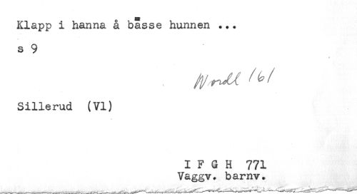 //// BS //// Klapp i hanna å basse hunnen ... //// s 9 //// * //// Sillerud (VI) //// I F G H 771 //// Vaggv. barnv. ////