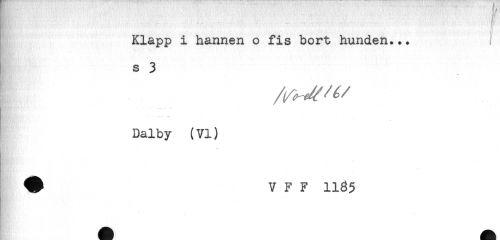 //// Klapp i hannen o fis bort hunden... //// * //// s 3 //// * //// Dalby (VI) //// # V F F 1185 ////