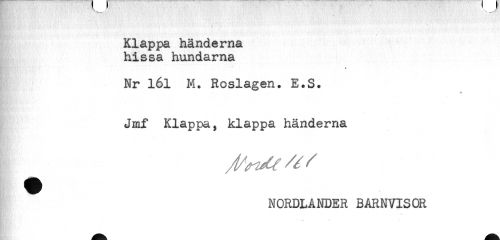 //// ty.* ^ ' i' '*'- ' t i' .'<'.'..'' *. ' ' < * - t //// Klappa händerna //// hissa hundarna //// - //// Nr 161 M. Roslagen. E.S. //// Jmf Klappa, klappa händerna //// NORDLANDER BARNVISOR ////