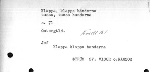 //// Klappa, klappa händerna //// tussa, tussa hundarna //// s. 71 //// östergtld. //// Jmf //// Klappa klappa handarna //// äTRÖM SV. VISOR o.RAMSOR //// an ^ ////