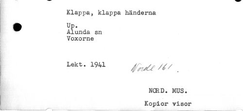 //// Klappa, klappa händerna //// ^ Alunda sn //// Voxorne //// Y //// t?.- //// ( //// t //// NCRD. MUS. //// V //// Kopior visor ////