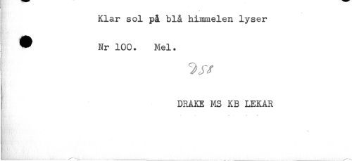 //// ! //// Klar sol på blå himmelen lyser //// ^ Nr 100. Mel. //// DRAKE MS KB LEKAR //// ,...................................................................................................................................... ^ ////