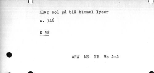 //// Klar sol på blå himmel lyser //// s. 346 //// - //// D 53 //// * ** //// ^ ARW MS KB Vs 2:2 ////