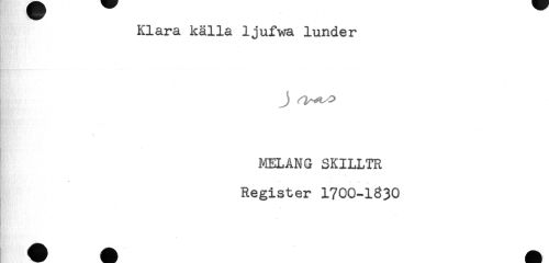 //// Klara källa ljufwa lunder //// - //// J //// HR'. //// ' //// J4ELANG SKILLTR //// .. //// - //// Register 1700-1330 //// - ////