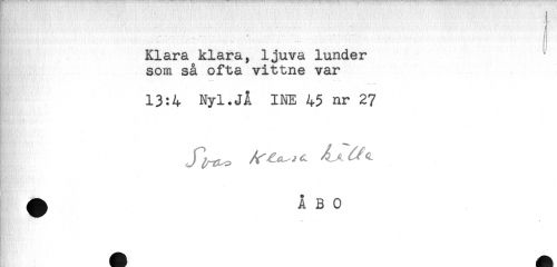//// r ., //// Klara klara, ljuva lundar //// som så ofta vittne var //// 13:4 Nyl.JÅ INE 45 nr 27 //// K< t //// * //// - ////