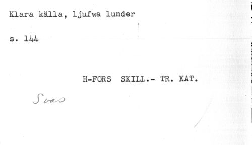 //// Klara källa, ljufwa lunder ^ //// t ^ //// s. 144 //// B //// ! //// t- //// H-FORS SKILL.- TR. KAT. ////