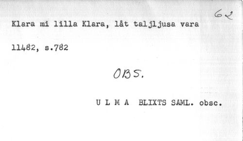 //// Klara mi lilla Klara, låt taljljusa vara ! //// i //// ^ * * . , . //// 114^2, s.7^2 //// . //// ; //// t //// f //// i //// ! //// f //// U L M A BLIXTS SAML. obsc. //// i //// < //// t //// t //// i //// < ////