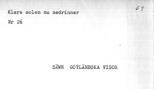 //// Klara solen nu nedrinner //// Nr 26 //// + //// i //// t //// ! //// '< //// : //// < - //// ! //// : //// ! //// C //// SÄWE GOTLÄNDSKA VISOR //// * f //// ! ////