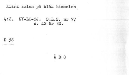 //// Klara solen på blåa himmelen //// 4:2. KY-LO-SJ. S.L.S. nr 77 //// s. 42 Nr 32. //// D 56 //// ÅBO ////