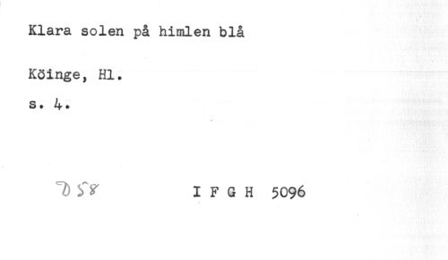 //// Klara solen på himlen blå //// Köinge, Hl. //// s. 4. //// * //// 1) fy I F G H 5096 ////
