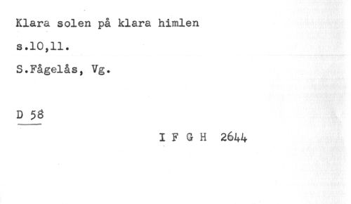 //// Klara solen på klara himlen //// s.10,11. //// S.Fågelås, Vg. //// D 56 //// I F G H 2644 //// * ////