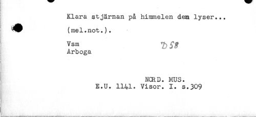 //// ( //// Klara stjärnan på himmelen dem lyser... //// ! ^^ (mel.not.). //// Vsm ^ ^ //// , Arboga //// NCRD. MUS. //// E.U. 1141. Visor. 1. s.309 ////