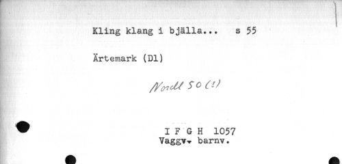 //// * ... - - //// Kling klang i bjälla... s 55 //// Ärtemark (Dl) //// - //// - //// . //// ^ I F G H 1057 //// Vaggv-^ barnv. //// - ////