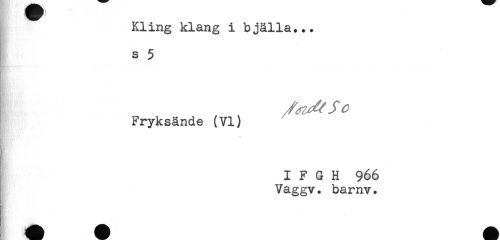 //// Kling klang i bjälla... //// - //// - //// s 5 //// Fryksände (VI) ^ //// R * //// I F G H 966 //// Vaggv. barnv. ////