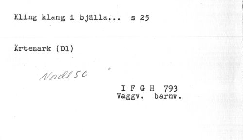 //// Kling klang i bjälla... s 25 //// i //// s //// { //// B //// Ärtemark (Dl) //// I F G H 793 //// Vaggv. barnv. ////