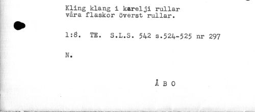 //// Rlmg klang i karelji rullar //// våra flaskor överst rullar. //// - //// 1:3. TE. S.L.S. 542 s.524-525 nr 297 //// - //// N. //// ÅBO //// ! ////
