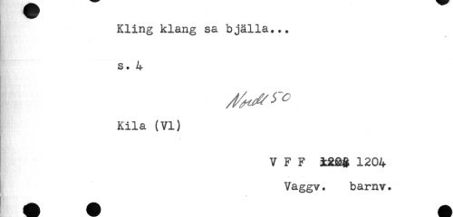 //// Kling klang sa bjälla... //// s. 4 //// Kila (VI) //// V F F ixa$ 1204 //// Vaggv. barnv. ////