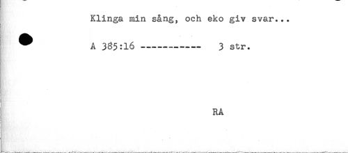 //// Klinga min sång, och eko giv svar... //// ^ A 385:16----------- 3 str. //// t, //// RA //// ! //// j //// ^ - . - ' ' ////