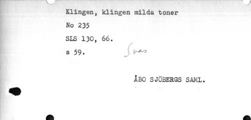 //// Klingen, klingen milda toner //// No 235 //// SLS 130, 66. //// s 59. . //// ÅBO SJÖBERGS SAML. ////