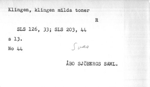 //// Klingen, klingen milda toner //// R //// SLS 126, 33; SLS 203, 44 //// s 13. //// No 44 i ^ //// ABO SJÖBERGS SAML. ////