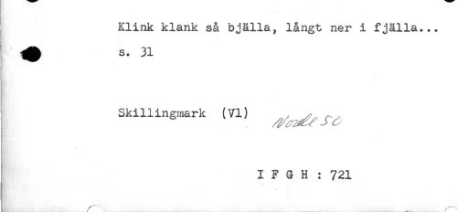 //// I Klink klank så bjälla, långt ner i fjälla... //// Skillingmark (VI) ^^ ^ //// (t ' //// I F G H : 721 ////
