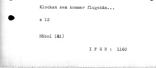 //// Klockan sex kommer flugekäx... //// Håbol (Bl) //// i //// I F G H : 1160 ////