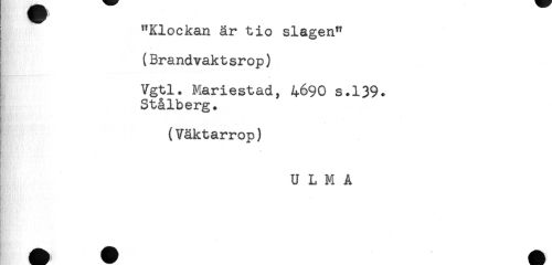 //// (Brandvaktsrop) //// .t? //// Vgtl. Mariestad, 4690 s.139. //// Stålberg. //// ' (Väktarrop) //// ! //// U L M A ////