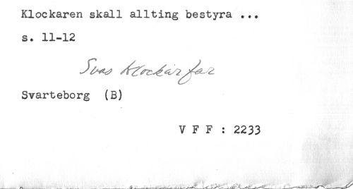 //// Klockaren skall allting bestyra ... //// s. 11-12 //// Svarteborg (B) //// V F F : 2233 //// * . ' ' ////