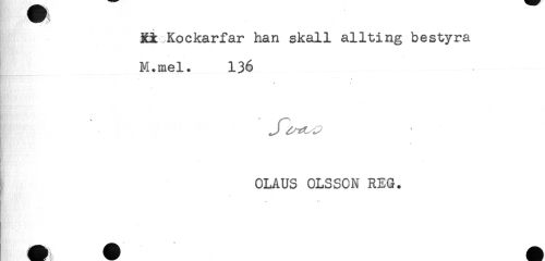 //// Xi Kockarfar han skall allting bestyra //// . //// M.mel. 136 //// ***** * //// ! * ** //// s OLAUS OLSSON REG. ////