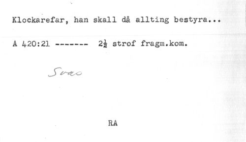 //// Klockarefar, han skall då allting bestyra... //// A 420:21 ------- 2^ strof fragm.kom. ////