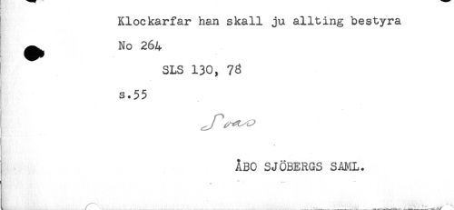 //// t //// Klockarfar han skall ju allting bestyra //// t //// ^ No 264 //// SLS 130, 78 //// * //// s.55 //// 1 //// i ÅBO SJÖBERGS S^ML. //// A //// t -- . .. //// B * ////