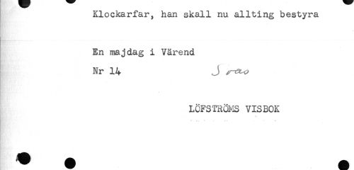 //// Klockarfar, han skall nu allting bestyra //// En majdag i Värend //// Nr 14 J //// - //// * //// LÖFSTRÖMS VISBOK ////