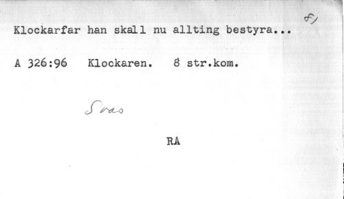 //// Klockarfar han skall nu allting bestyra... //// A 326:96 Klockaren. 3 str.kom. //// : //// i //// i //// i //// ! //// RA //// t //// ! //// : //// P //// F //// ! ////