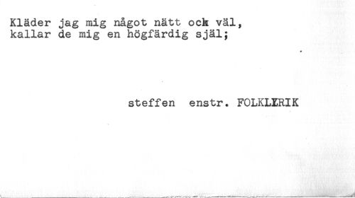 //// Kläder jag mig något nätt och väl, //// kallar de mig en högfärdig själ; //// * //// Steffen enstr. FOLKLXRIK ////