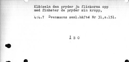 //// Klädseln den pryder ju flickorna opp //// med finheter de pryder sin kropp, //// t * * --'v //// 4:4.? Stenssons saml.häftd Nr 31,s.l$l. //// ÅBO ////