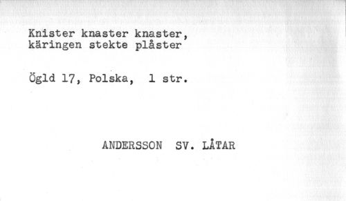 //// Knister knaster knaster, //// käringen stekte plåster //// Ögld 17, Polska, 1 str. //// ANDERSSON SV. LÅTAR ////