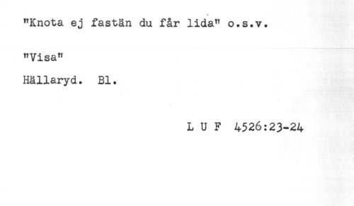 //// "Knota ej fastän du får lida" o.s.v. //// "Visa" //// Hällaryd. Bl. //// L U F 4526:23-24 ////