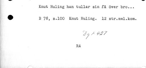 //// Knut Huling han tullar sin fä över bro... //// !n<< //// < //// i //// ^ B 78, s.100 Knut Huling. 12 str.mel.kom. //// - //// RA //// i //// a //// t //// B'.* 'f.' //// * ////