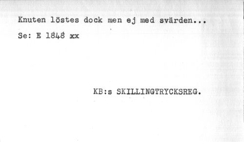//// Knuten löstes dock men ej med svärden... //// Se: E 1848 xx //// i //// KB:s SKILLINGTRYCKSREG. //// i //// i //// i ////
