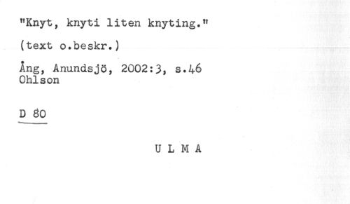 //// "Knyt, knyti liten knyting." //// (text o.beskr.) //// Ang, Anundsjö, 2002:3, s.46 //// Ohlson //// D 60 //// U L M A ////