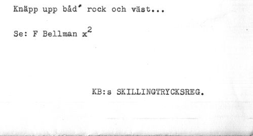 //// nnapp upp oaa rocK ocn vast... //// Se: F Bellman x^ //// KB:s SKILLINGTRYCKSREG. ////