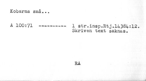 //// Kobarna små... //// A 100:71 ---------- 1 str.insp.Rtj.14334:12. //// Skriven text saknas. //// RA ////