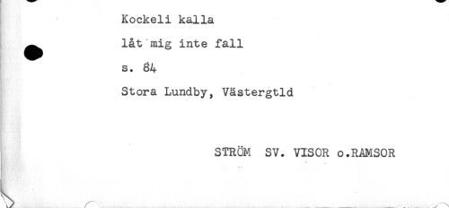 //// ! Kockeli kalla //// ^ låt mig inte fall //// i s. 84 //// Stora Lundby, Västergtld //// ' STRÖM SV. VISOR o.RAMSOR ////