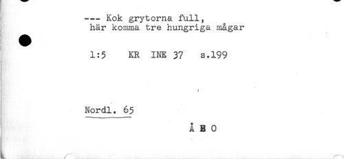 //// —- Kok grytorna full, //// här komma tre hungriga mågar //// ' 1:5 KR INE 37 s.199 //// J //// Nordl. 65 ////