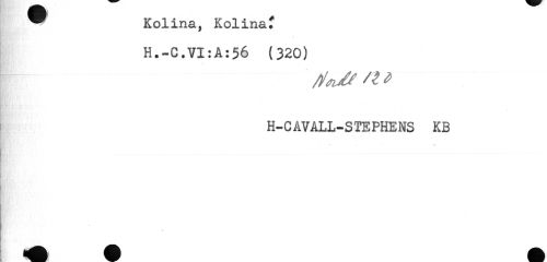 //// ^ Kolina, Kolinaf //// H.-C.VI:A:56 (320) //// - H-CAVALL-STEPHENS KB //// . //// - //// Hg;. ////