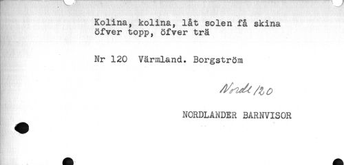 //// Kolina, kolina, låt solen få skina //// ofver topp, ofver trä //// - //// Nr 120 Värmland. Borgström //// NORDLANDER BARNVISOR ////