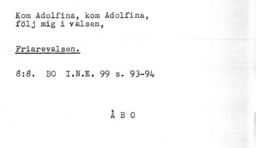 //// Kom Adolfina, kom Adolfina, //// följ mig i valsen, //// ^ Friarevaisen. //// BO I.N.E. 99 s. 93-94 //// ÅBO //// .t* ////