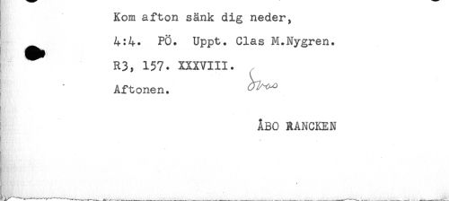 //// Kom afton sänk dig neder, //// 4:4. PÖ. Uppt. Clas M.Nygren. //// R3, 157. XXXVIII. //// Aftonen. //// ÅBO RANCKEN //// ^^ _________ ^ ////